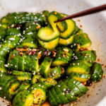 Now- mix together the cucumbers with the sauce, then enjoy!